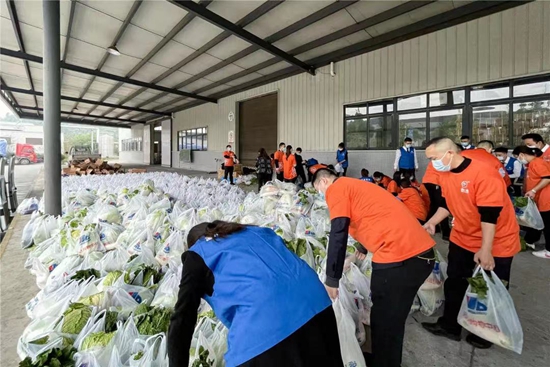 五、2021年10月25日,针对富顺突发疫情,集团公司组织对北湖半岛进行物资捐助,公司人员协助物资进行分装。